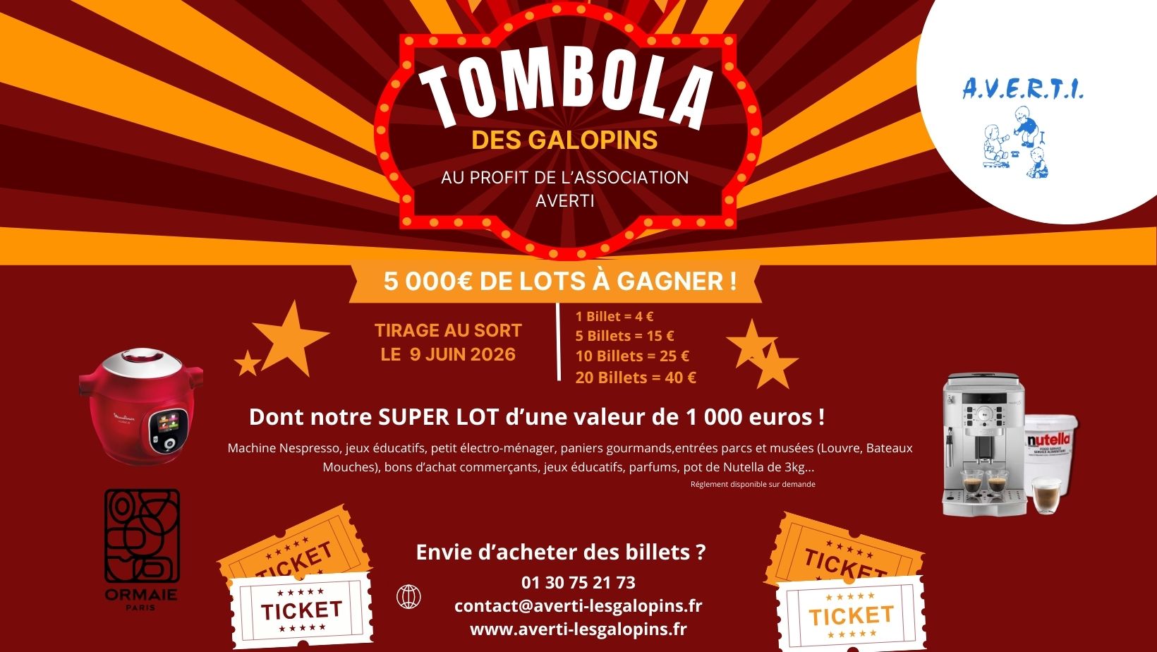 Le bénéfice de cette tombola sera ENTIÈREMENT dédié aux Galopins (équipements spécifiques, spectacles ,sorties…)